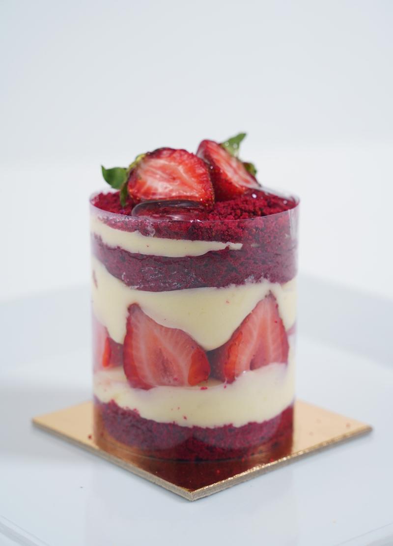 Kekinin rengini kırmızı meyve özlerinden alan, içerisinde beyaz çikolata, Çilek meyveleriyle bezenmiş pastamızın,bize özel krema katıyla ve etrafı doğal taze çileklerle süslenerek damak tadınıza uygun rahatsız etmeyen kıvamı ile sizin beğeninize sunulur..